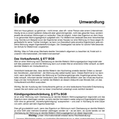 Sie haben ein Schreiben erhalten, dass Ihr Wohnhaus in Eigentumswohnungen aufgeteilt werden soll? Sie fragen sich, was das bedeutet – und was Ihre Optionen sind? Unser Informationsblatt gibt einen ersten Überblick.